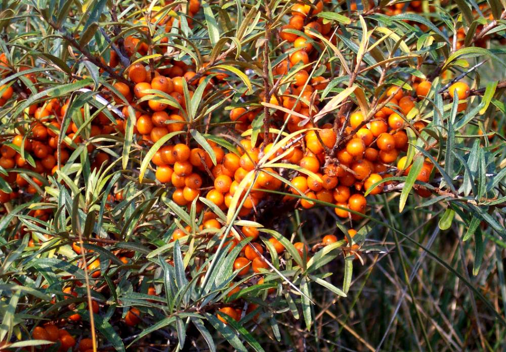 Du kan også plukke Vesterhavets vitaminpille, havtorn. Et enkelt af de modne orange bær indeholder ligeså mange c-vitaminer som en stor appelsin og var derfor tidligere lokalbefolkningens vitaminpille. Havtorn er en tvebo, hvilket betyder, der både er han og hun havtornebuske. Du kan se begge slags i slugten ned mod havet.
